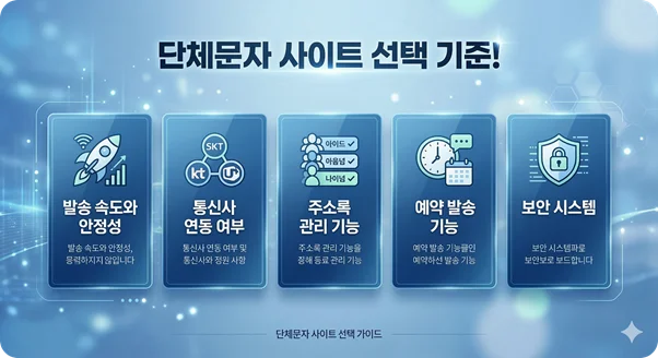 대량문자를 안정적으로 보내기 위해서는 문자 서비스 선택 기준도 중요합니다.